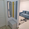Apartamentul este complet mobilat si utilat, totul nou, prima inchiriere : TV smart, Masina de spalat rufe cu uscator, frigider mare, cuptor, plita, hota, aer conditionat, masa cu scaune, cafetiera, spatii de depozitare si centrala proprie.
