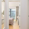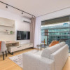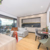 • Living room cu zone dedicate pentru luat masa, recreere si lucru (canapea de 3 locuri extensibila, TV Smart 4K LG, masa dinning si birou, AC);