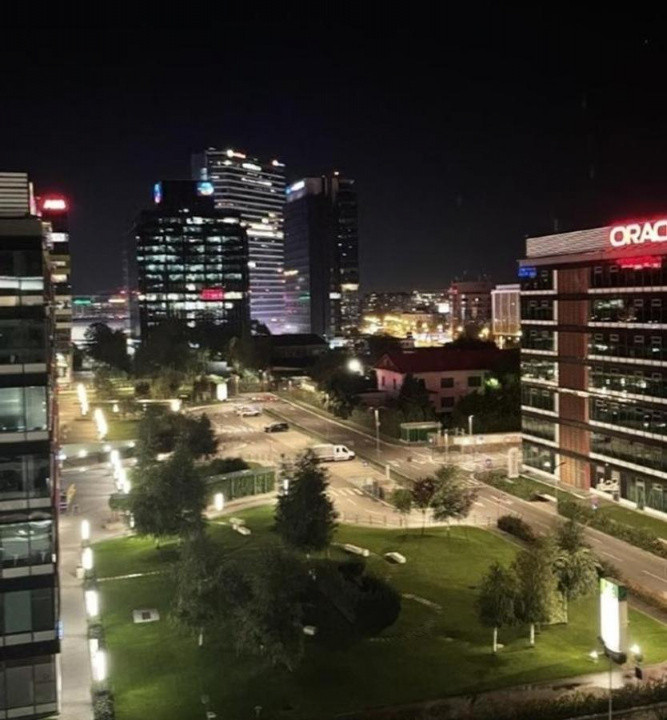 Apartament 2 camere de inchiriat situat in zona Aviatiei Pipera in complexul rezidentia de lux Nusco, cu o vedere superba asupra orasului, terasa mare, ultimul etaj 7/7, tavane inalte de 2,8 m, mobilat premium, dressing Rovere, bucatarie Veneta Cucine, incalzire in pardoseala, incalzire individuala, gradina in interiorul complexului cu spatii verzi, foarte aproape de Promenada mall, de zona business de nord a capitalei si la 3-4 minute de metrou. Fara animale si fumat in apartament.
