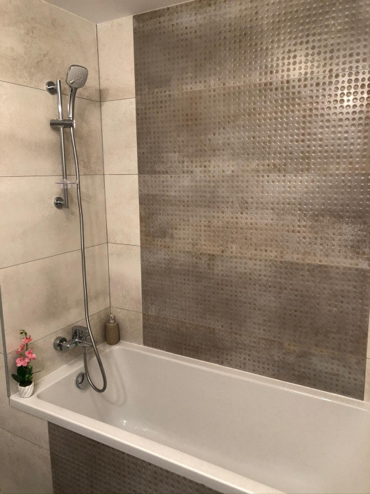 Apartamentul este complet mobilat si utilat (masina de spalat rufe cu uscator, masina de spalat vase, hota, cuptor electric, plita electrica, cuptor cu microunde, combina frigorifica, televizor).