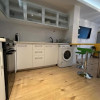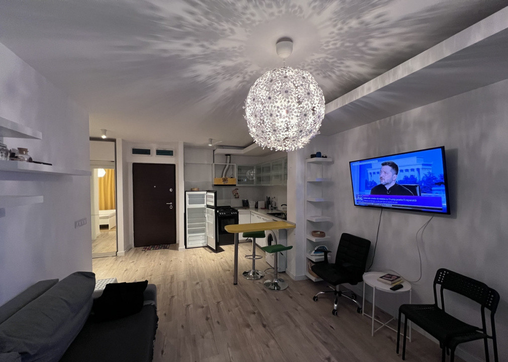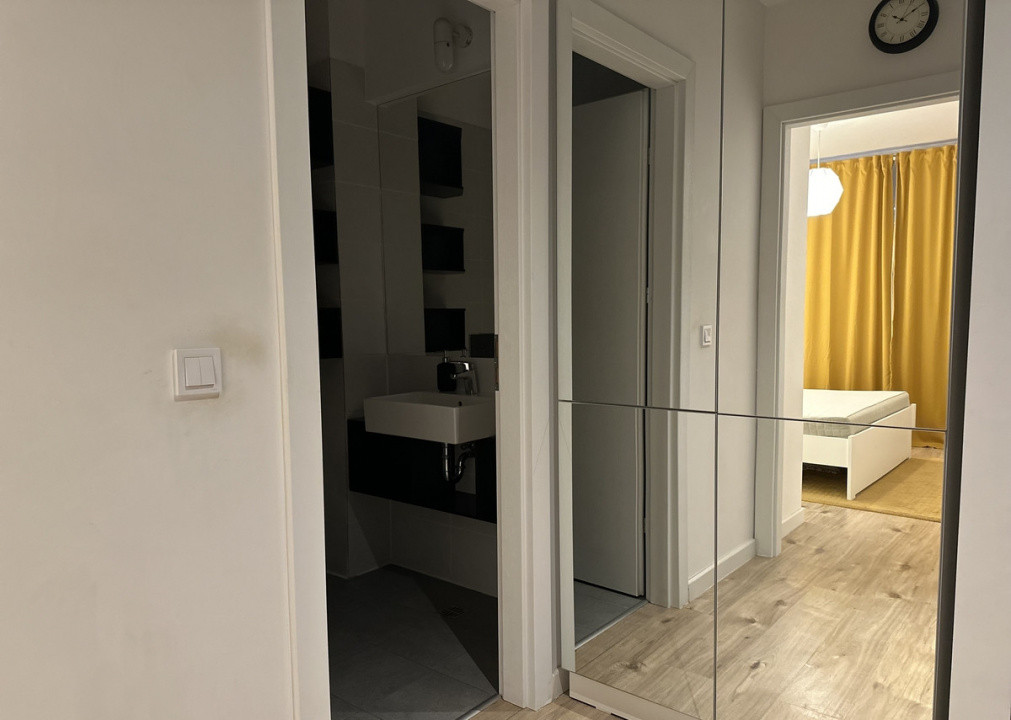 Apartament luminos de 2 camere de inchiriat, mobilat si utilat complet, intr-un bloc construit in 2019. Este o oaza de liniste si de verde intr-o zona foarte dinamica a orasului. Apartamentul este situat la parter si dispune de o terasa de 20 de metri patrati, foarte frumoasa, inconjurata de braduti ornamentali. Terasa da intr-o zona de curte interioara, cu o peluza verde si linistita, ferita de trafic si de zgomotul masinilor. Proprietatea dispune de o centrala de apartament. Bucataria este echipata cu tot ce e nevoie, dar nu are masina de spalat vase. Statia de metrou Pipera este la doar cateva minute de mers pe jos. De asemenea exista in cateva sute de metri tramvaie si autobuze care asigura o buna conectivitate cu celelalte zone ale orasului. Apartamentul nu dispune de un loc de parcare, dar exista posibilitatea inchirierii unui loc in parcarea subterana a blocului. De asemenea, exista locuri de parcare amenajate de suprafata, atat in fata blocului, cat si la bulevard. Exista o pista de biciclete amenajata la bulevard. Zona este una vibranta, cu multe spatii de birouri, sali de sport, magazine, cafenele si restaurante. In imediata apropiere se afla un supermarket Kaufland.