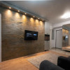 Design & Confort: Șemineu electric, perete decorativ din ardezie flexibilă, tapet premium, mobilier nou, ales cu grijă.