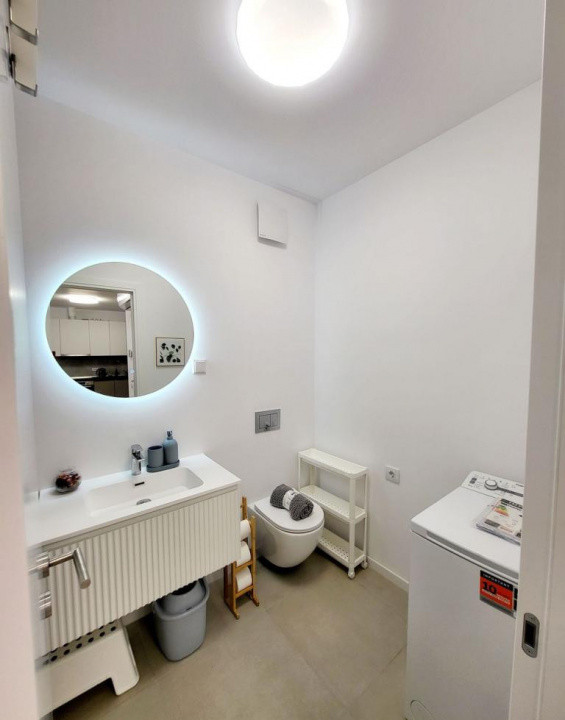 Disponibil imediat, complet utilat (masina de spalat, masina de spalat vase, hota, plita cu inductie, cuptor electric, cuptor cu microunde, aspirator, prajitor de paine si cafetiera Nespresso, interfon video). Storuri verticale. Incalzire in pardoseala.