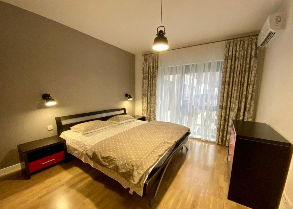 Apartament 2 camere de inchiriat situat in complexul Arcadia Apartments Domenii, etaj 5, vedere curtea interioara, bloc B3, 61mp utili (54mp apartamentul + 7mp balconul), incalzire in pardoseala, centrala proprie, canapea extensibila, patul este 180x200cm, disponibilitate imediata.