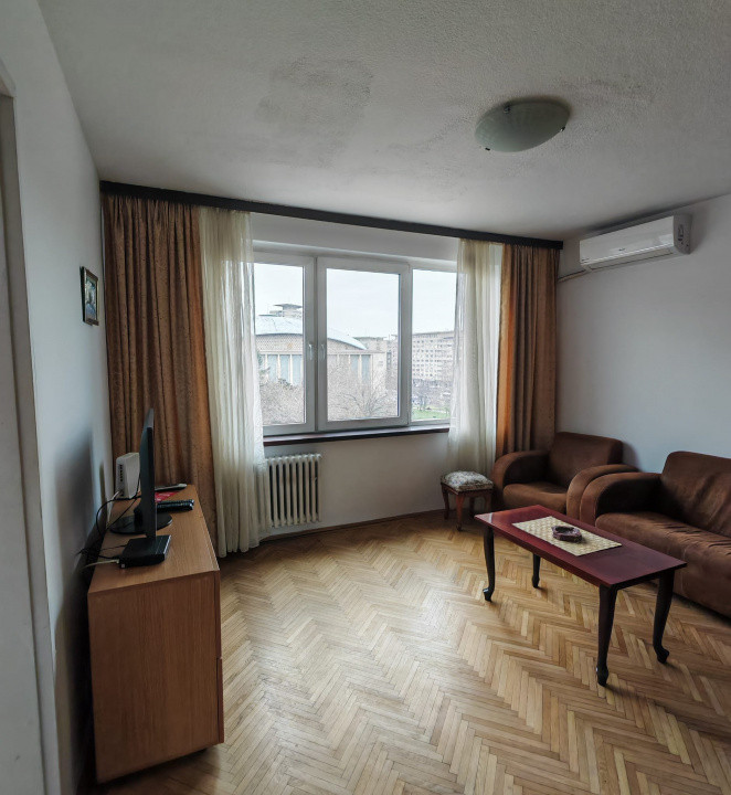 Apartament 2 camere de inchiriat situat in Sala Palatului , str. Stirbei Voda nr 2 , etaj 4/8, colt cu Calea Victoriei, mobilat si utilat, A/C , usa metalica, termopan. Bloc termoizolat cu centrala de bloc.