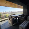Apartament 3 camere de inchiriat in complexul Parcului 20, zona bd. Expozitiei, 1 Mai aflat la etajul 1/12 si dispune de o terasa generoasa de 14 mp, cu vedere la gradina privata a complexului. Este complet mobilat si utilat cu electronice si elcectrocasnice premium: Samsung, Electrolux si AEG. Toate camerele inclusive bucataria au iesire separata pe terasa.