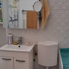 Bucataria foarte spatioasa are un dressing pe un perete, iar aragazul cu hota este despartit de restul printr- un perete. In acest dinning/kitchen cu tv smart exista un fotoliu pat, ceea ce il face locuibil. Baia are cada + masina de spalat+ aerisire electrica.